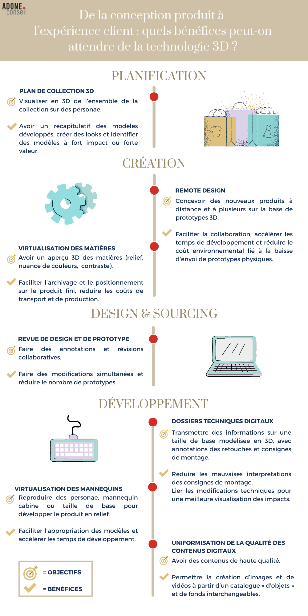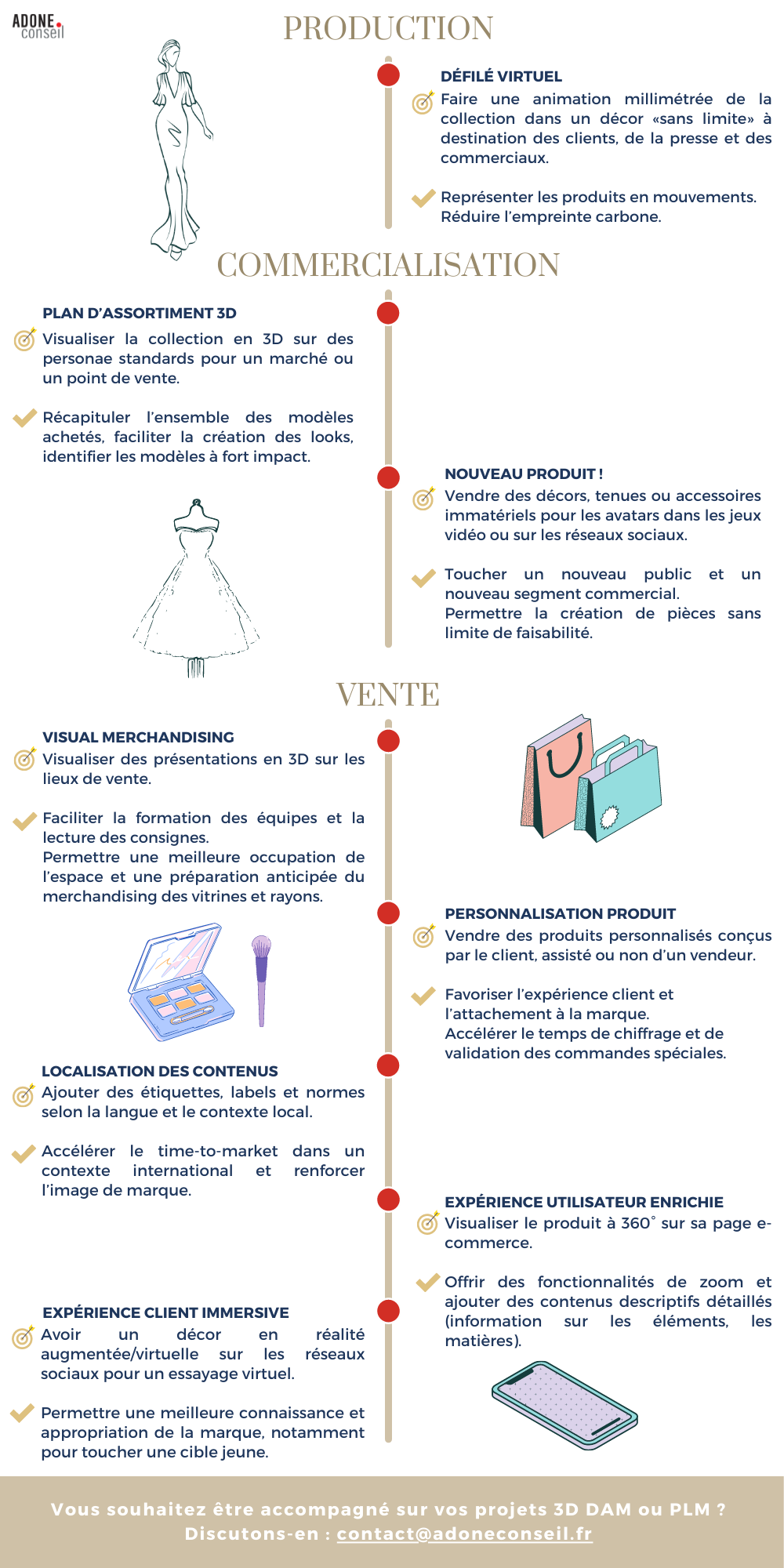 Les possibilités d’application de la 3D sont nombreuses. Il faut choisir où placer ses efforts car, au-delà d’un nouveau type de données, il s’agit de mettre en place de nouvelles pratiques, de nouveaux processus qui impactent l’organisation et dont le coût de mise en place initial n’est pas neutre. Pour s’assurer d’une bonne assimilation des enjeux, d’une mobilisation des équipes sur les activités essentielles à la mise en place de ces projets ainsi qu’au respect des plannings et budgets alloués, Adone Conseil vous accompagne dans vos projets de digitalisation !