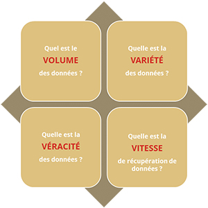 - Quel est le VOLUME de données dont je dispose ? Le volume va contribuer à déterminer l’architecture à mettre en place et les technologies à utiliser. On ne mettra pas en place le même système pour 1Mo de données que pour 10To et on ne choisira pas les mêmes technologies. Pour 1Mo de données on n’utilisera pas forcément Hadoop. (Framework pour la distribution du stockage de données) On ne choisira également pas la même base de données, etc.…