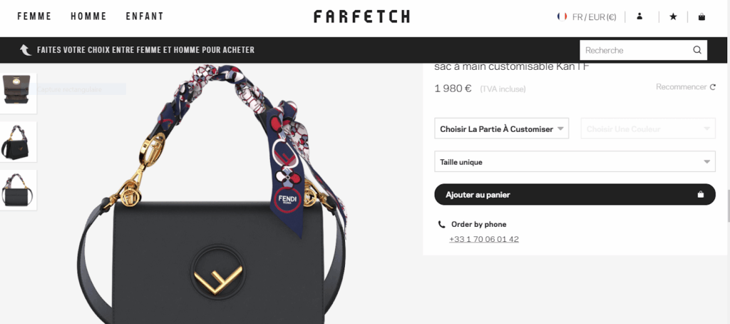 1 – Et la personnalisation touche autant l’expérience en ligne que le produit. Pour Noël 2017, la marque Fendi a offert à ses clients  la possibilité de customiser ses sacs online, dans un partenariat exclusif avec la plateforme Farfetch.