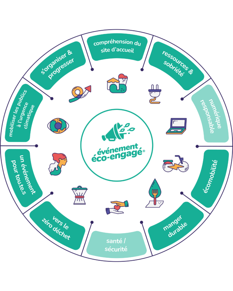 Pour obtenir cette certification de niveau 1, nous avons sélectionné 33 engagements parmi 110 propositions du cadre de référence officiel. Ces engagements couvrent divers domaines, incluant la réduction des déchets, l’approvisionnement responsable, ainsi que l’accessibilité et l’inclusivité.