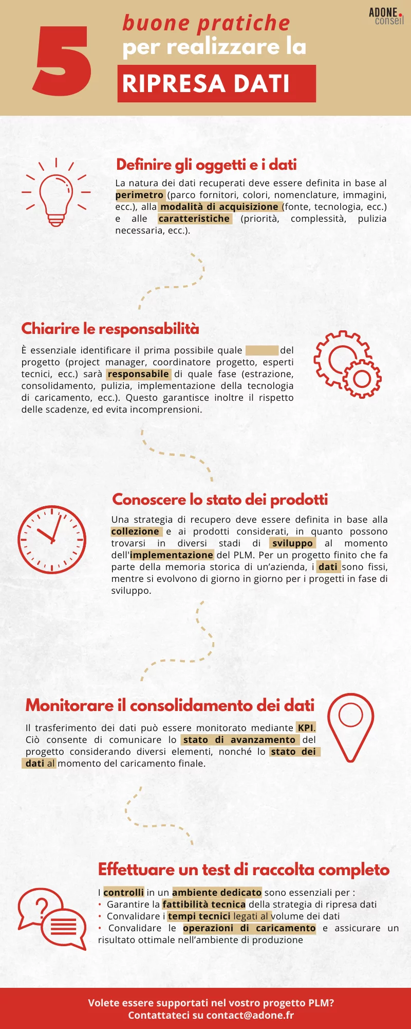 Attraverso la seguente infografica, i nostri esperti vi propongono di scoprire le 5 migliori pratiche da prendere in considerazione per la raccolta dei dati durante l’implementazione di uno strumento PLM.