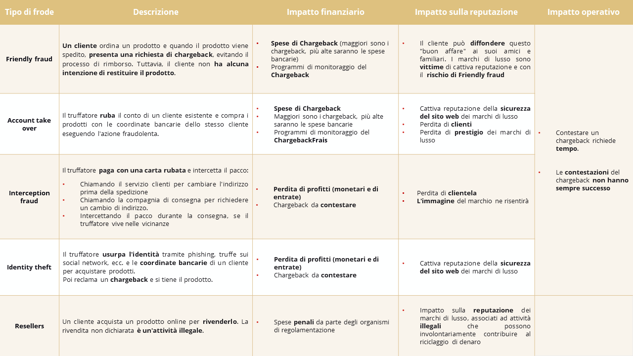 Secondo uno studio di ClearSale, le frodi costano circa 6,5 miliardi di dollari entro l’anno 2021 e il numero di rifiuti ingiustificati di pagamento crescerà di 443 miliardi di dollari. L’impatto delle frodi online è immenso e tutte le industrie sono colpite, senza eccezione. Ecco una panoramica delle forme più comuni di truffe e il loro impatto sui marchi di lusso:
